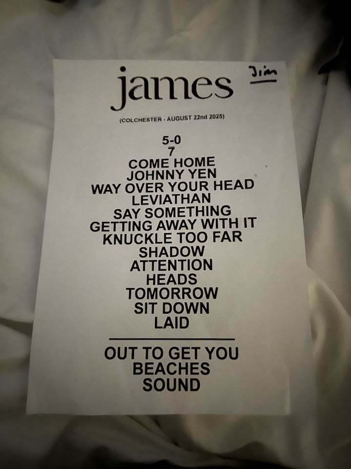 Five-O / All The Colours Of You / She's A Star / Say Something / Leviathan / Way Over Your Head / Born Of Frustration / Come Home / Shadow Of A Giant / Out To Get You / Attention / Tomorrow / Sit Down / Laid / Beautiful Beaches / Sometimes / Sound